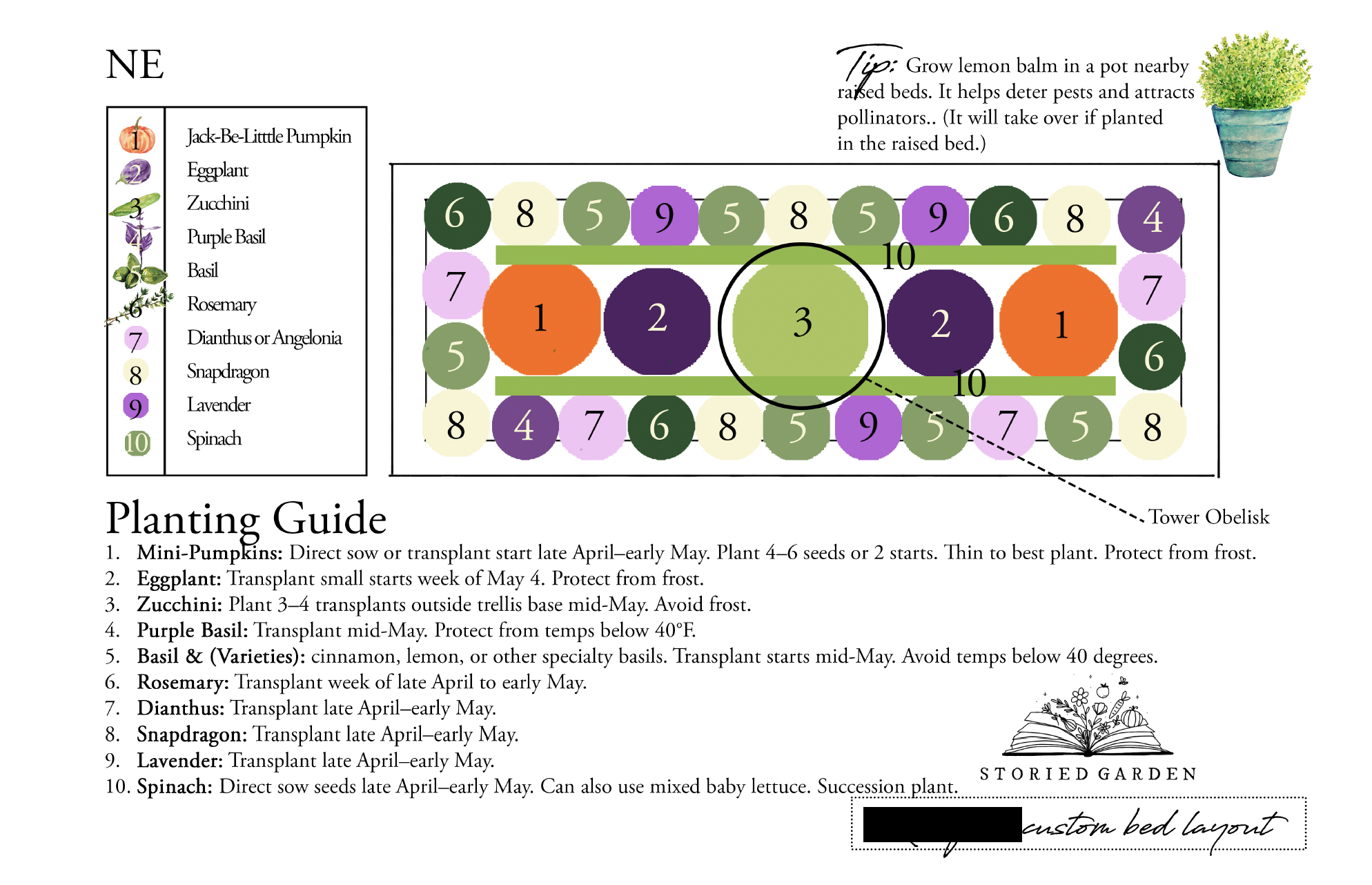 At left: Custom planting plans for each of your installed beds.